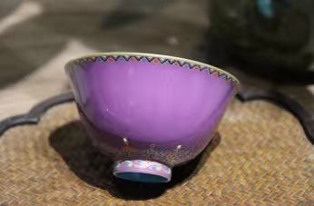 手绘珐琅彩描金图案紫色主人杯